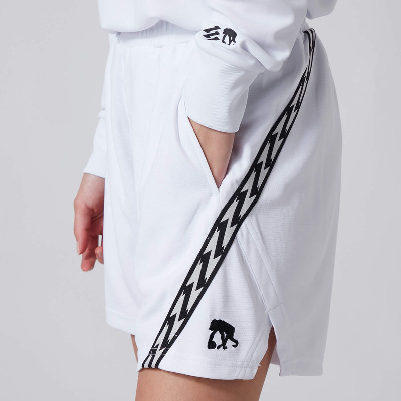 脇の切り替えから裾に沿ってクランクテープを配した、定番シルエットのショートパンツ。