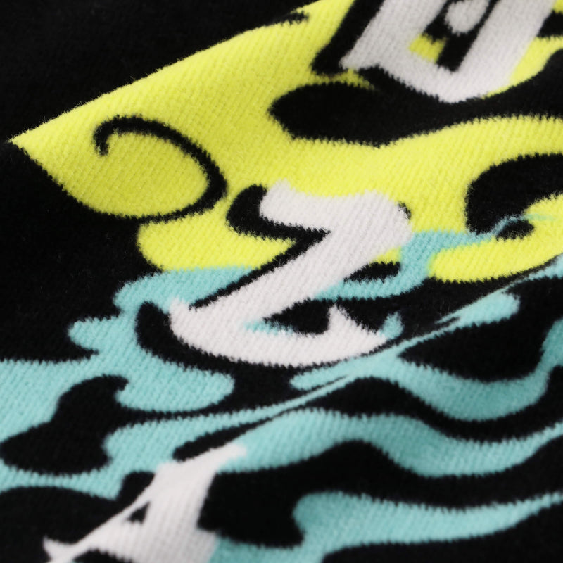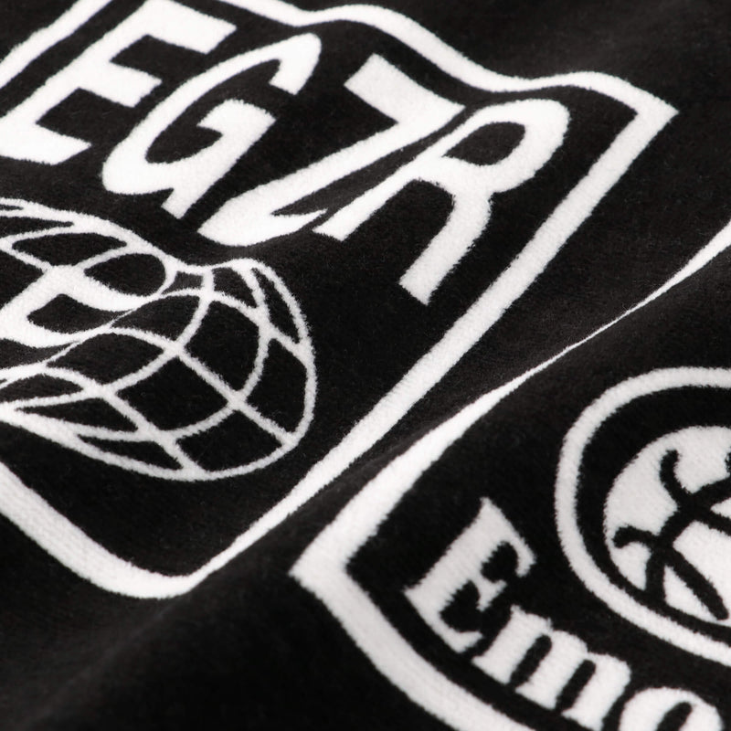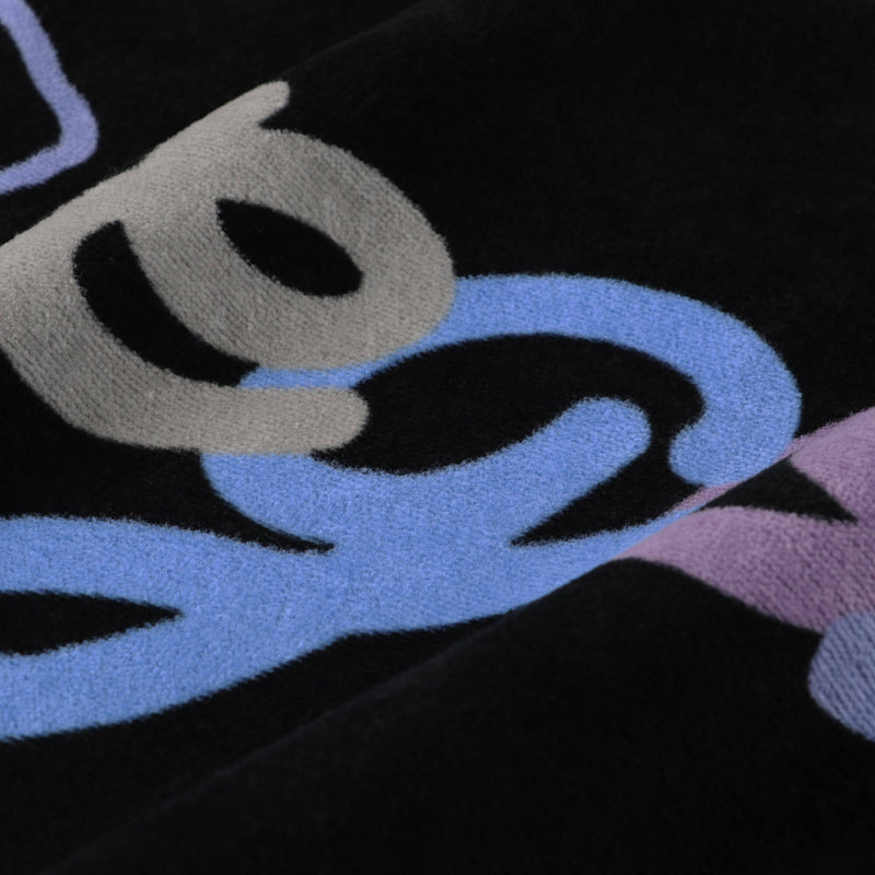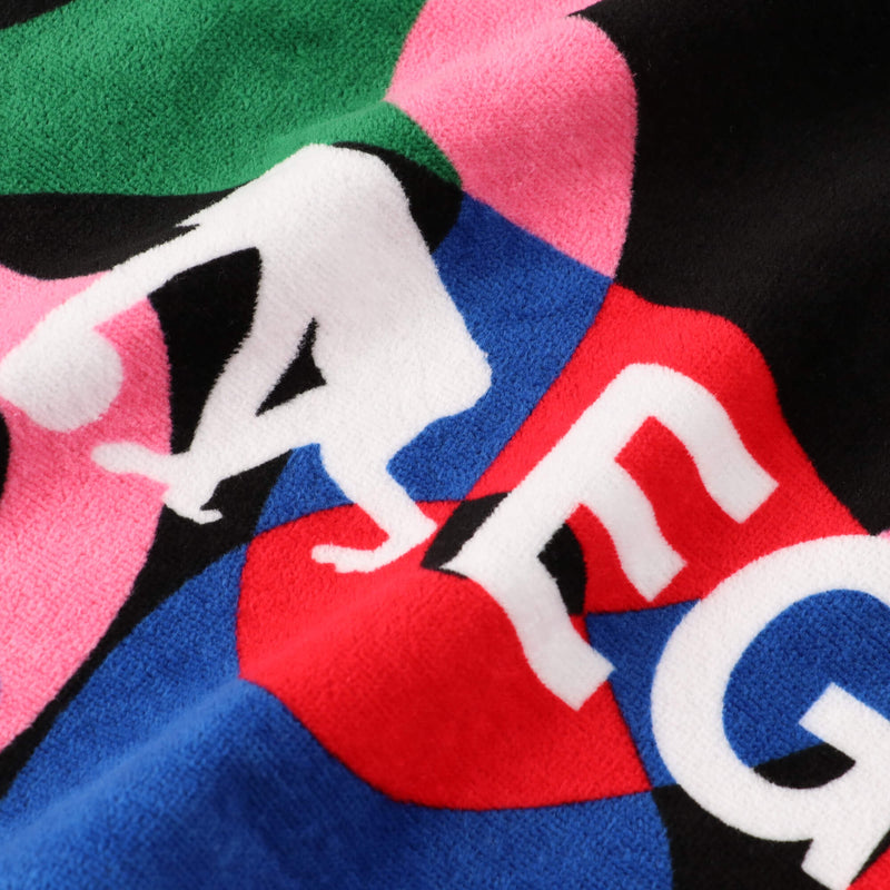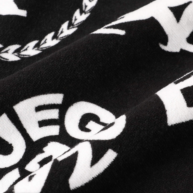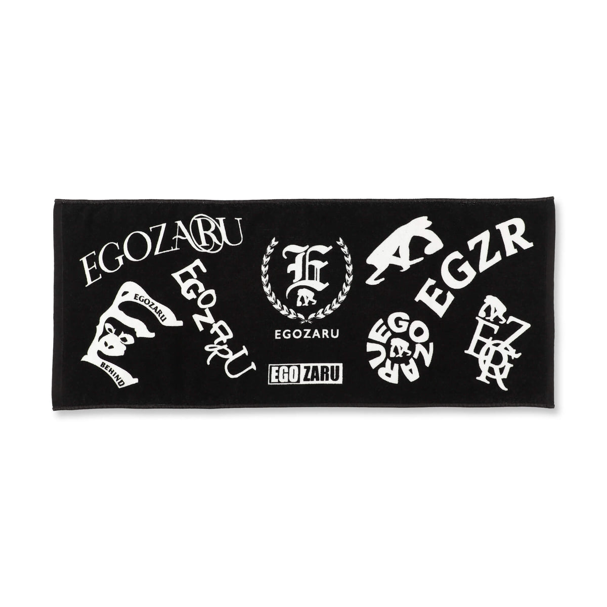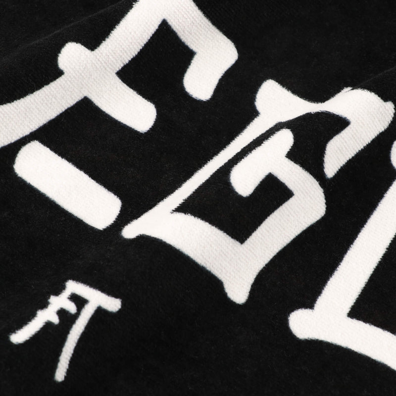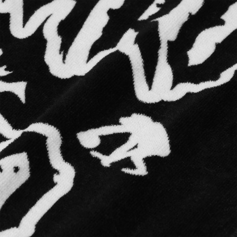 ホラーテイストのクリーピーロゴのグラフィックを配したスポーツ用フェイスタオル。