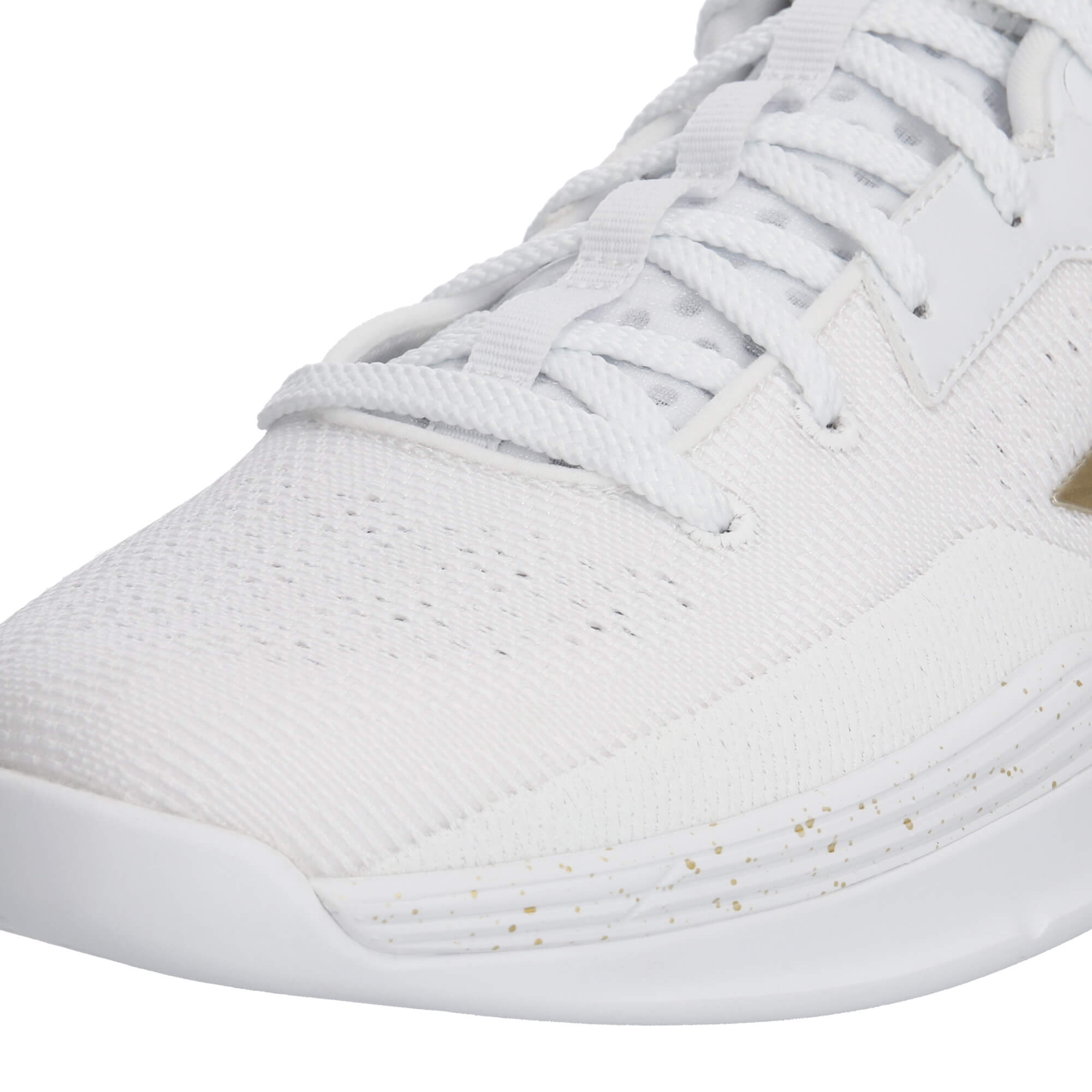 さらに大きな負担のかかる側部はメッシュの編み目を細かくし外ブレに対応。タン甲部分にはパンチングフォームを採用することで紐を強く締めても心地よい足あたりでありながらフォームの気孔により蒸れを大きく軽減。踵部には冷却モールド加工を施したヒールカウンターを内蔵し踵のブレを抑制。内部はブーティ構造でしっかりとしたフィット感を実現。