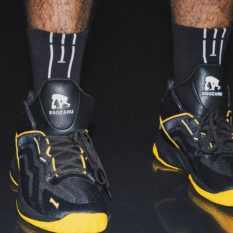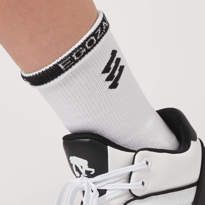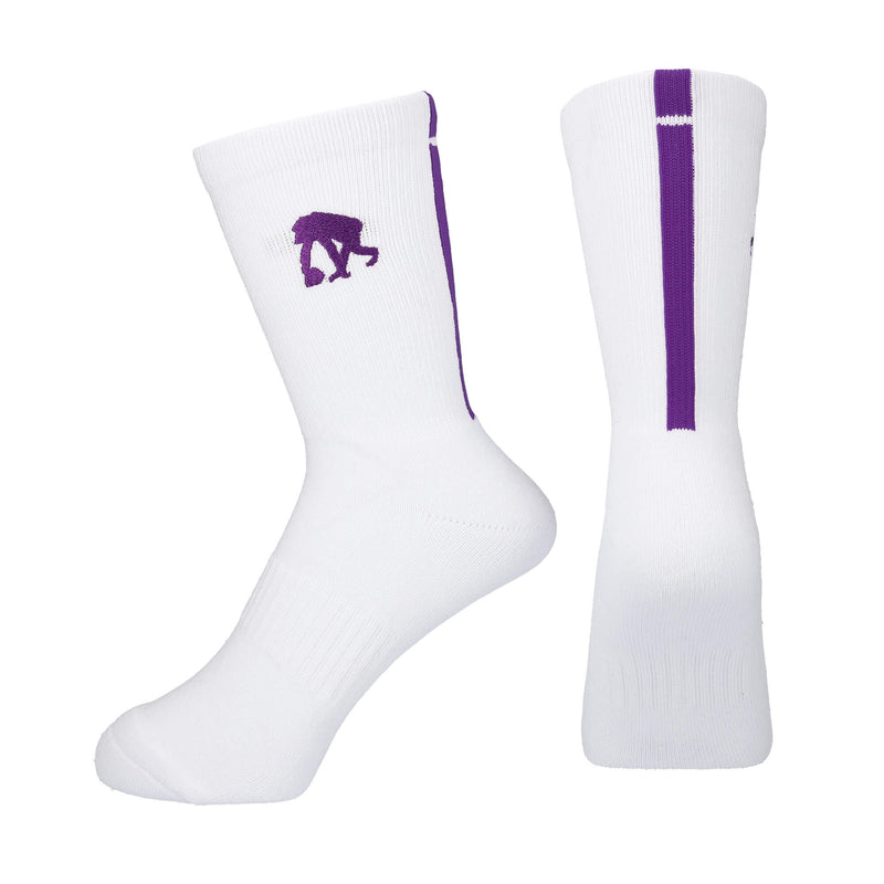 バックサイドの上下に細いラインを配したバスケットボール用ソックス。
