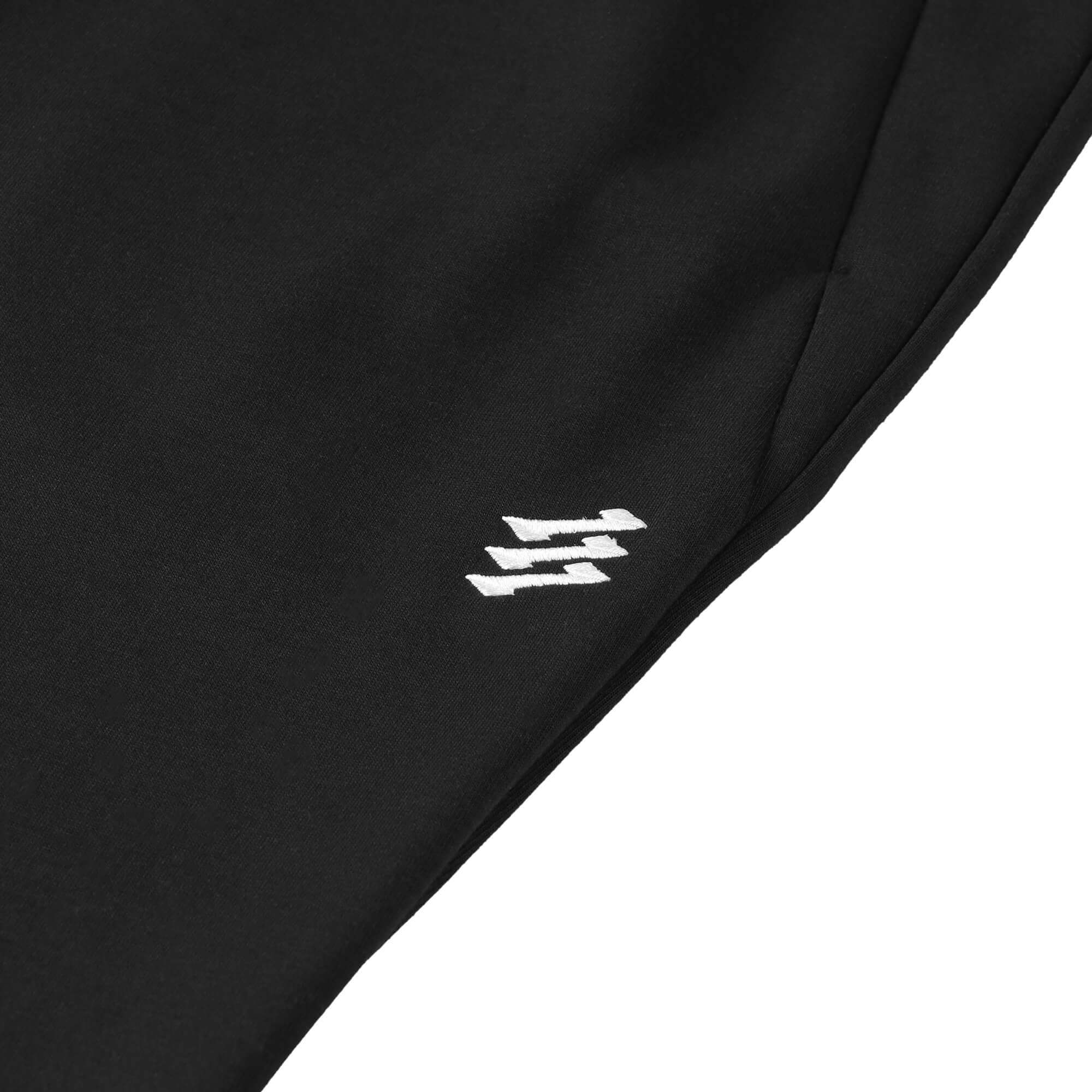 瀬川琉久のシグネチャーロゴとスリークランクロゴを左右に配したジョガーパンツ。