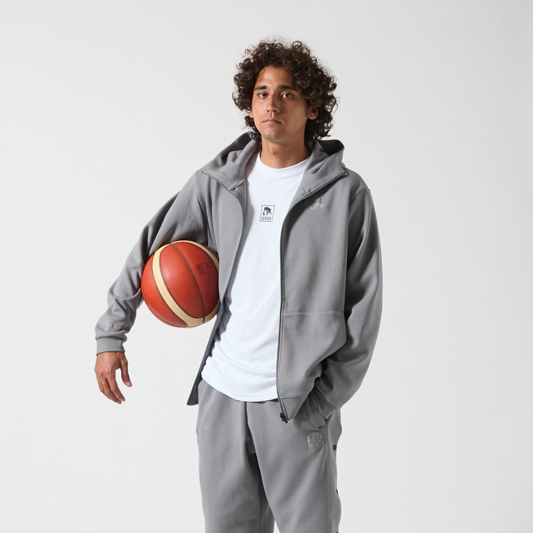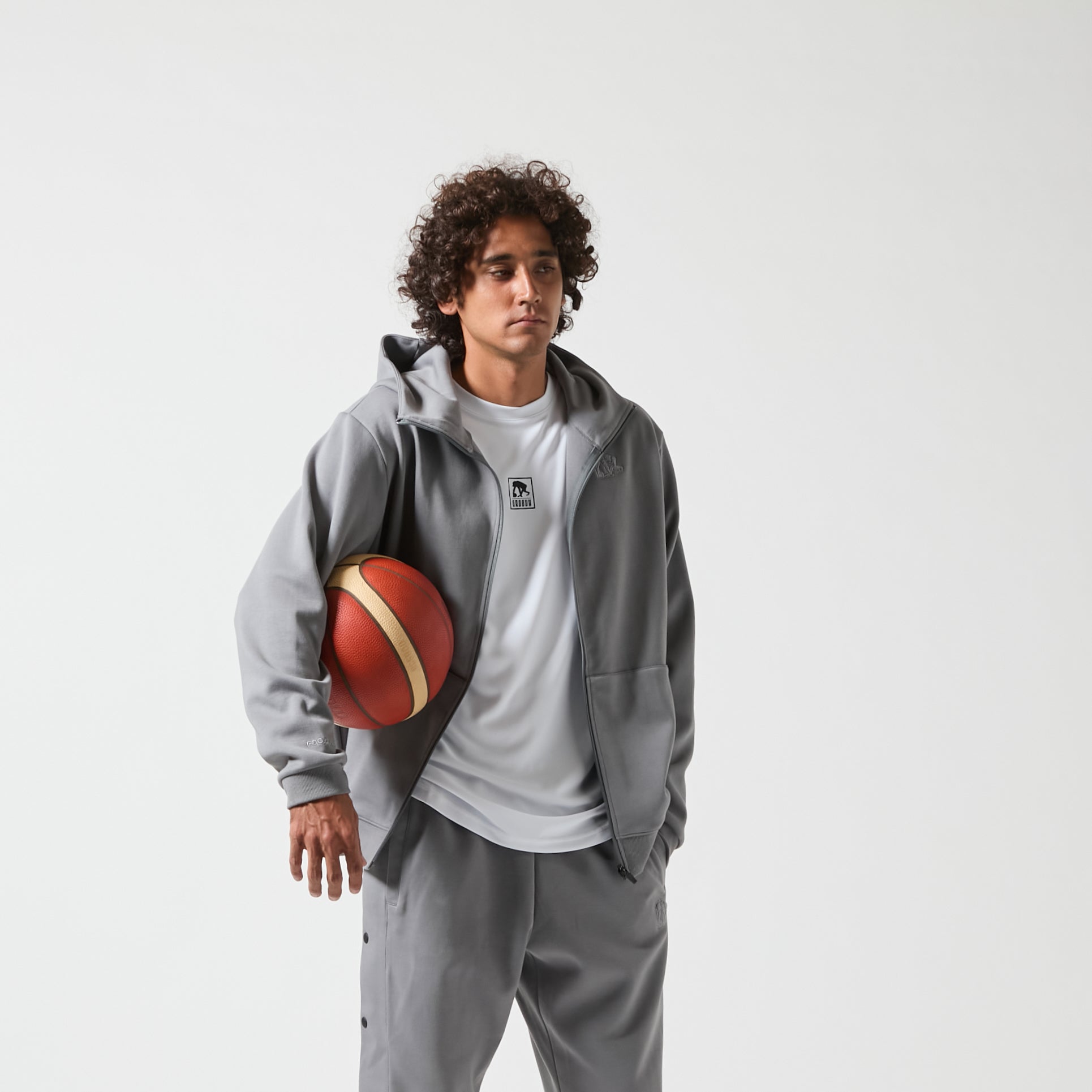 吸水性に優れたダンボールニット生地を採用したジップアップパーカ。