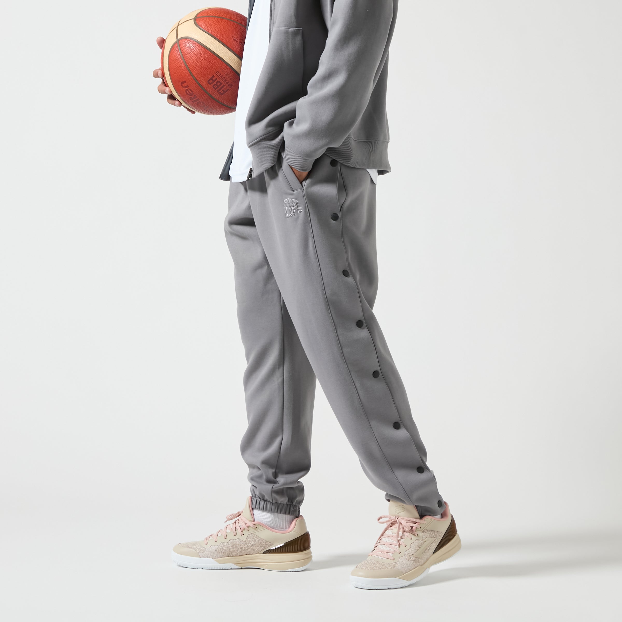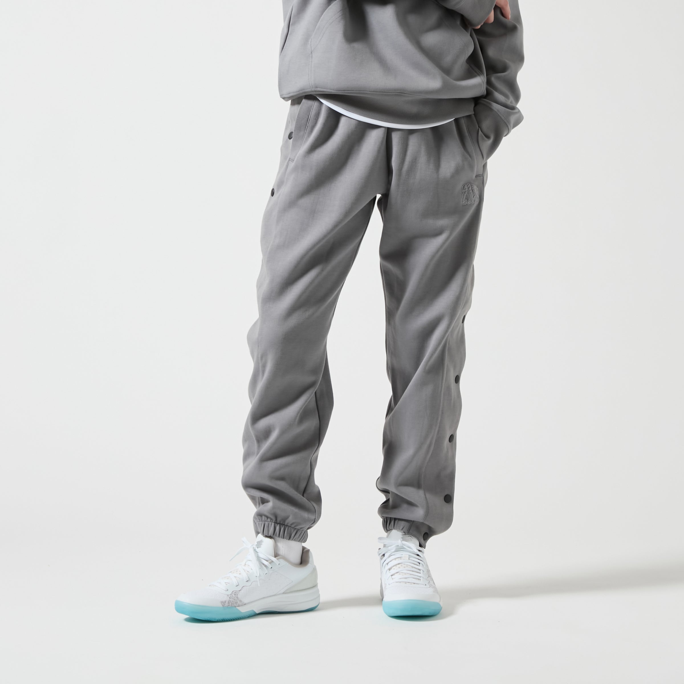 吸水性に優れたダンボールニット生地を採用した、フルオープン仕様のワイドシルエットスウェットパンツ。