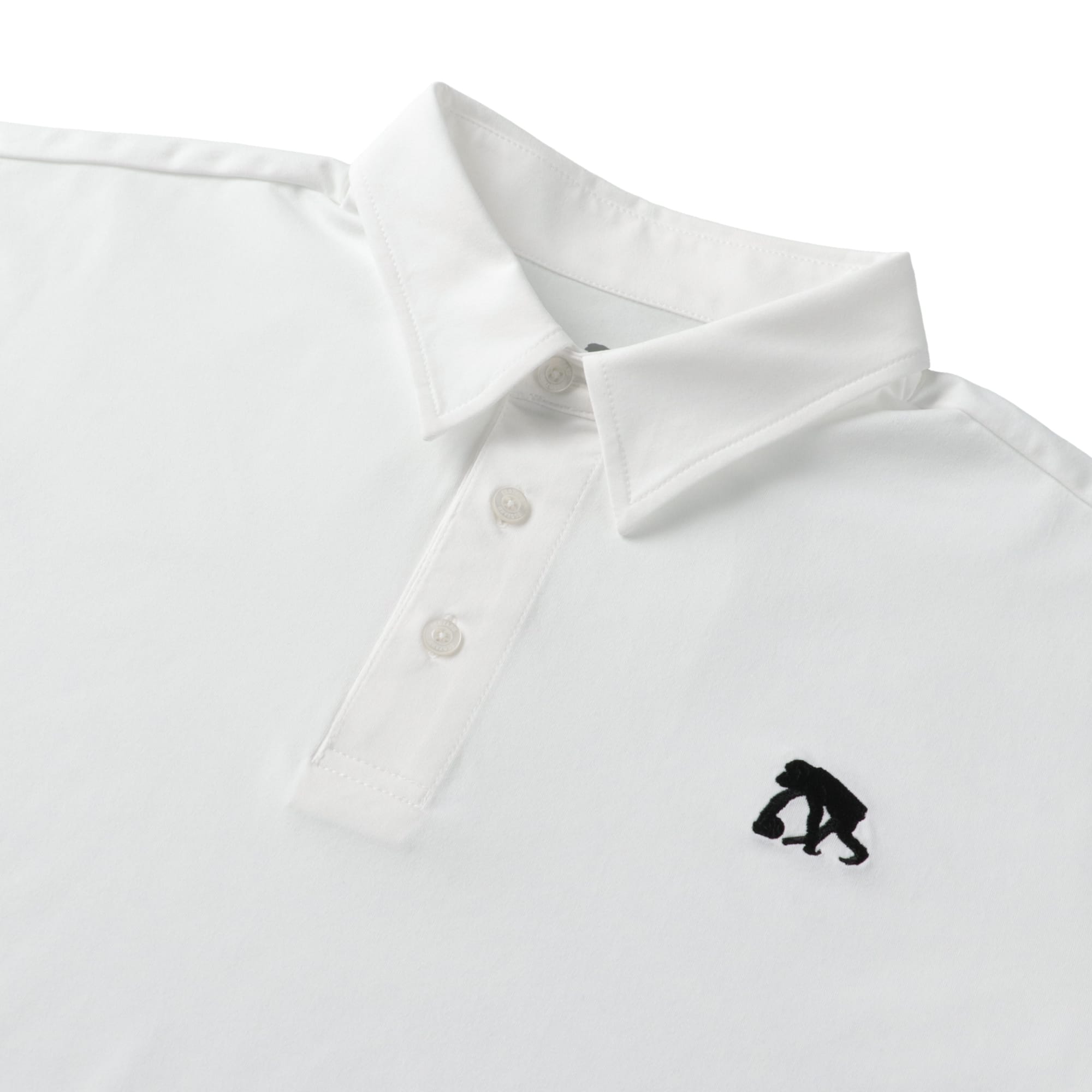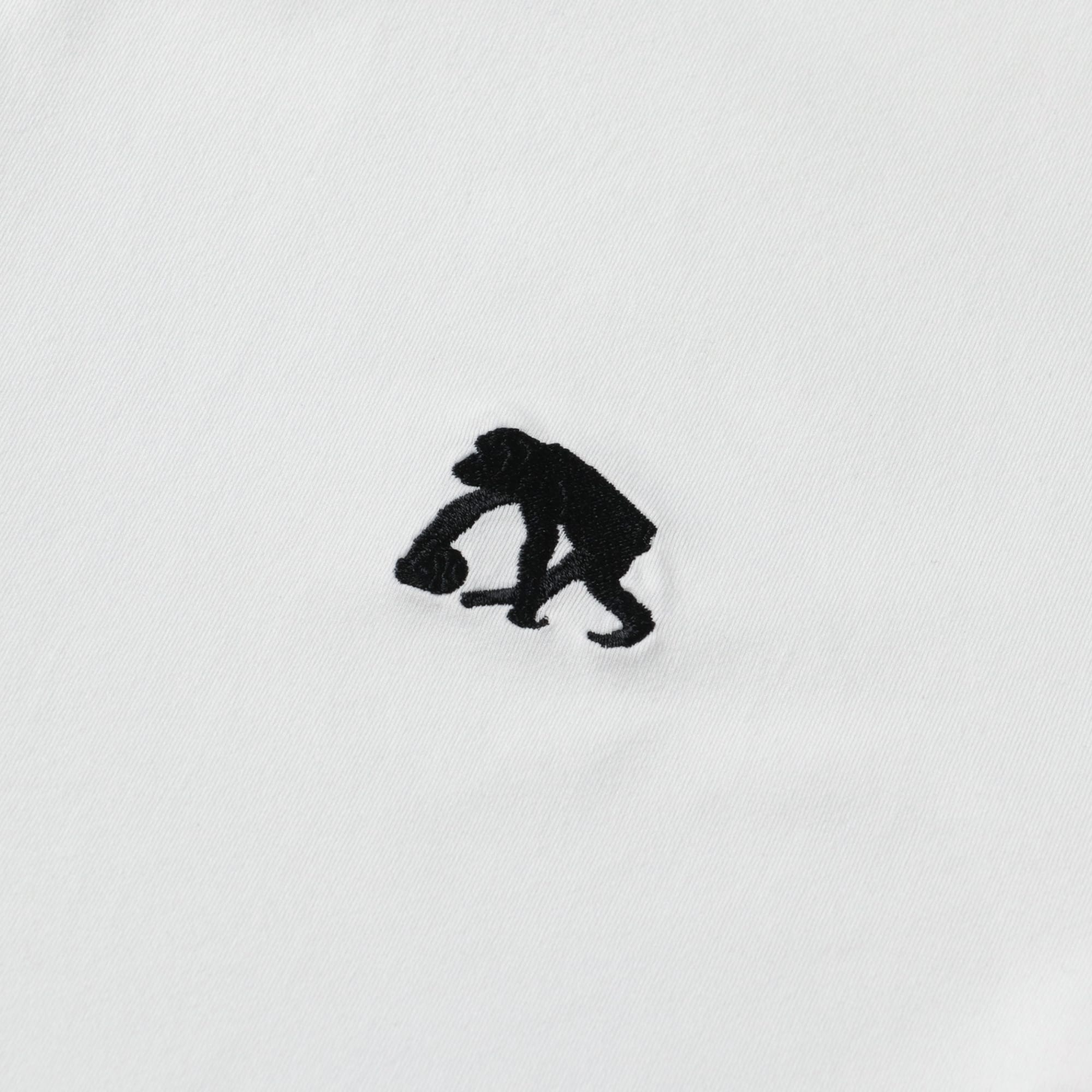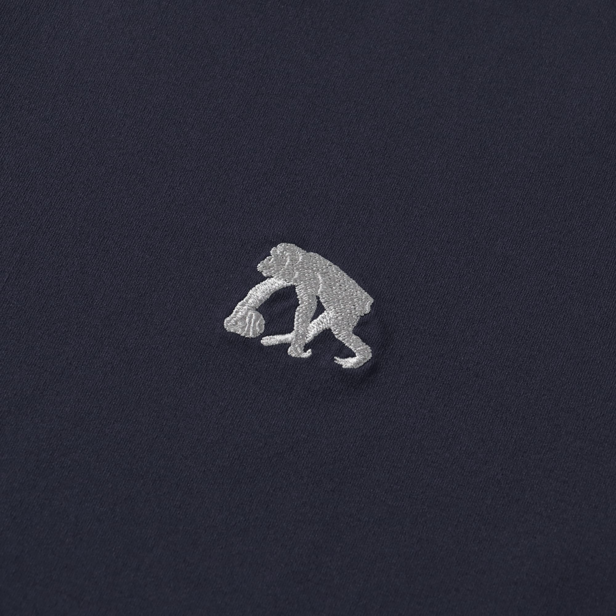 胸に刺繍ロゴを配したシンプルなデザイン。衿は共地の仕様。