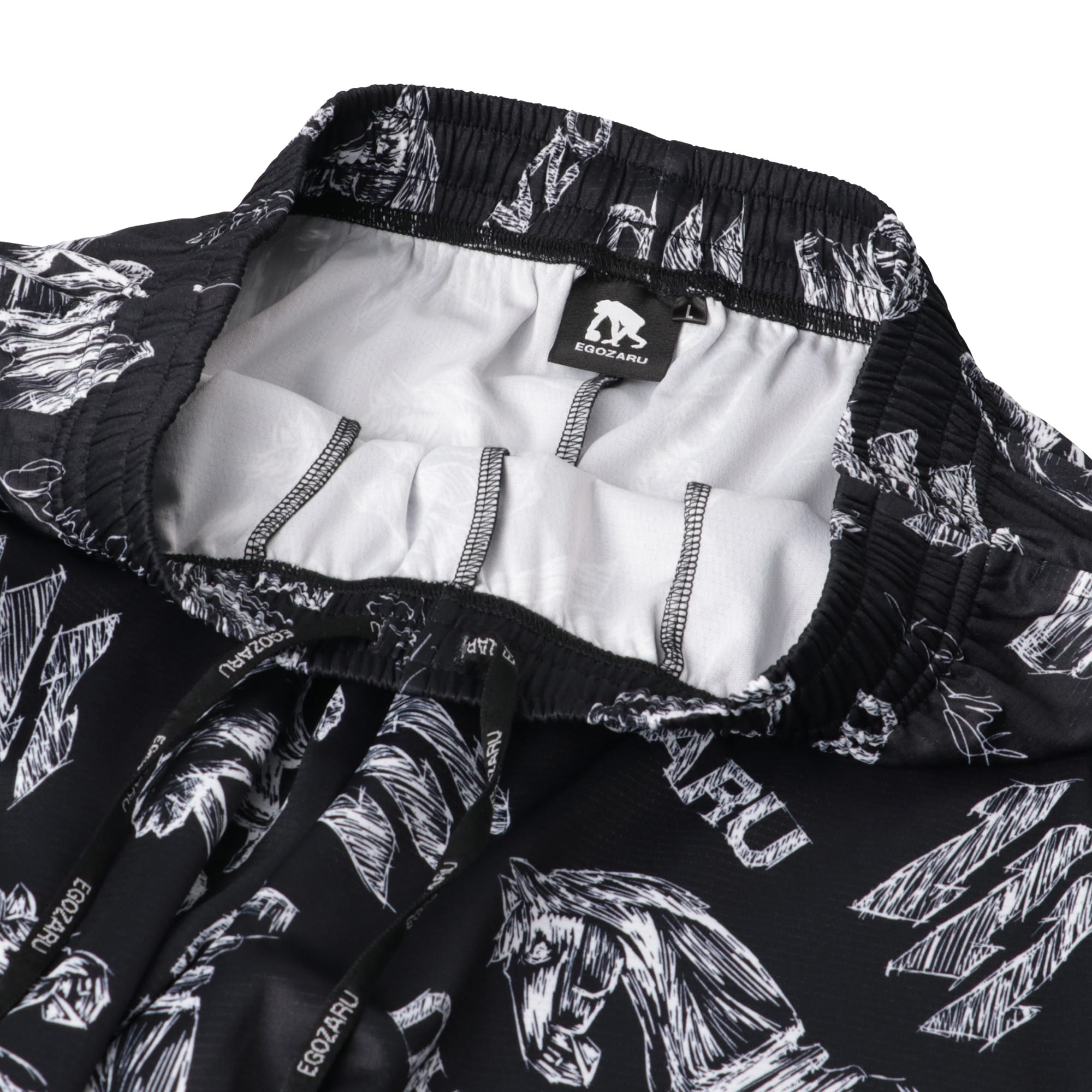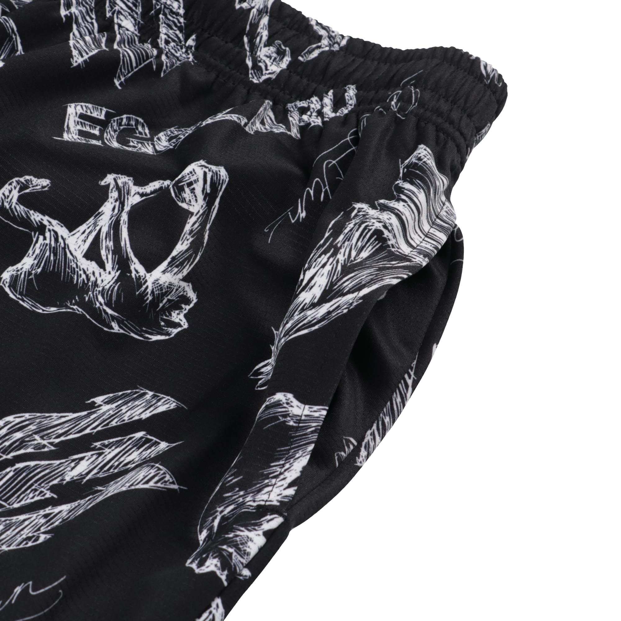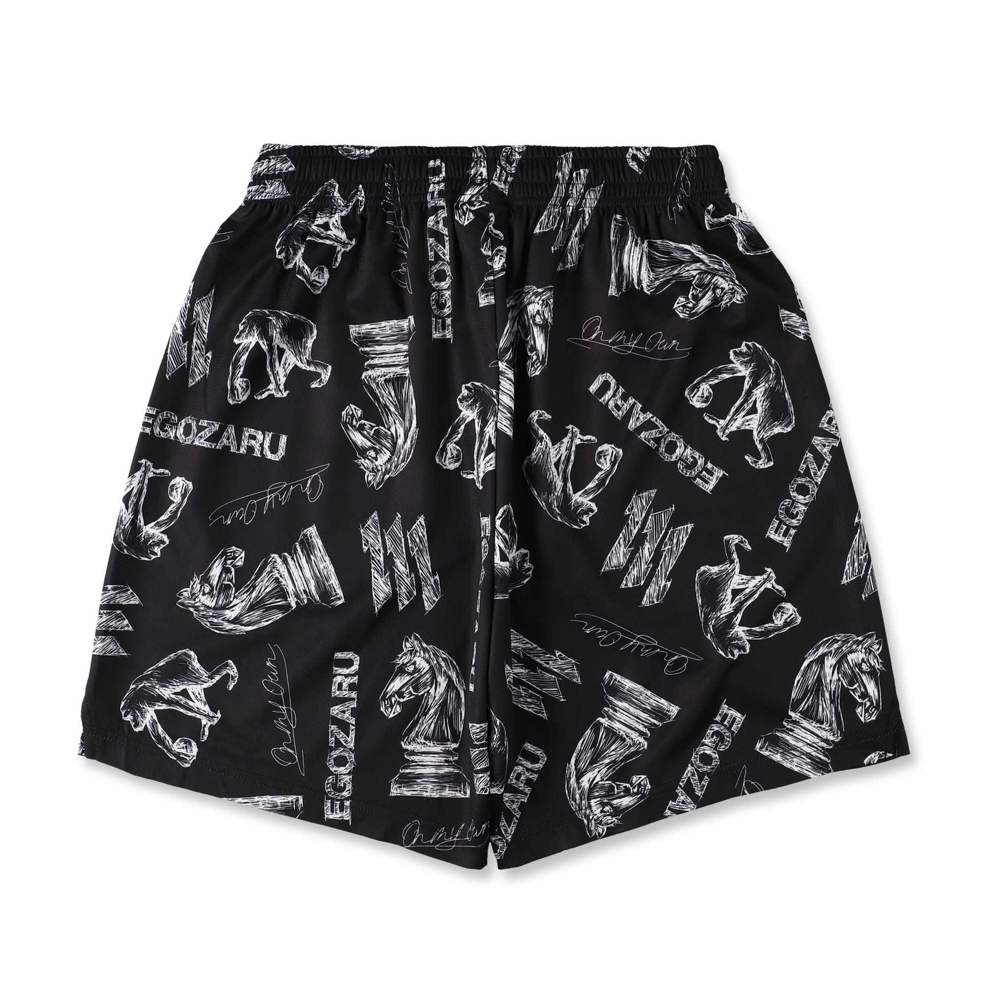 2026年の干支である午年(うま年)をテーマに、チェスのナイトのグラフィックを全面に配したひざ上丈シルエットのショートパンツ。