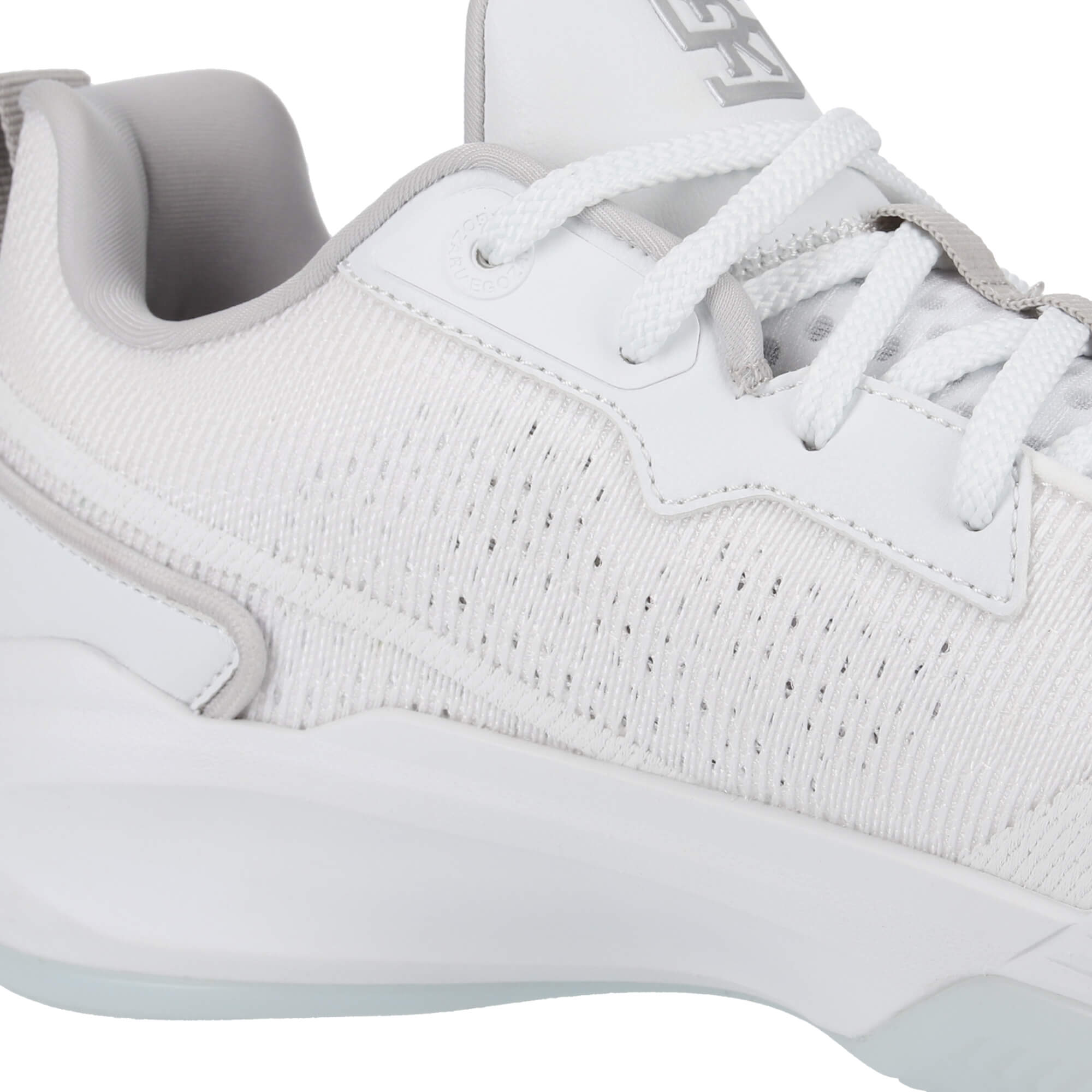 クリーンなホワイトアッパーをベースに、細胞や原子のようにEGOZARUを構成する最小単位を意味するアイコン「クランクロゴ」とRIKUコレクションを象徴する「RSロゴ」はシルバーカラーで表現。アウトソールは青みのかかった半透明ラバー。