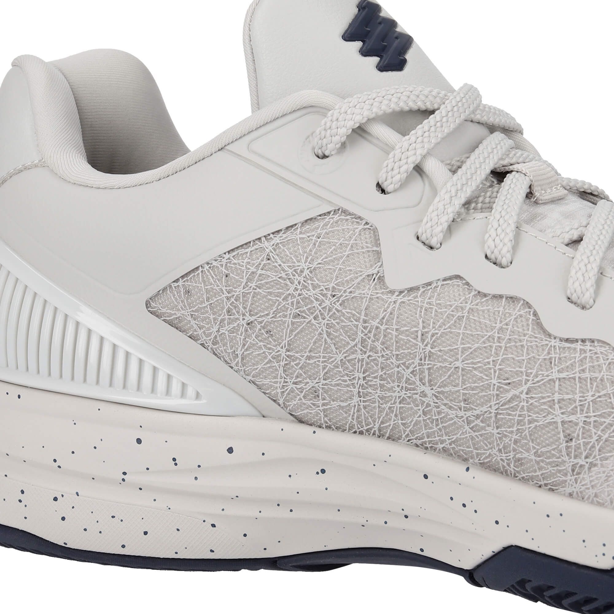 EGO AWAKE 2のために開発した超軽量ながら高強度なメッシュ素材<アーティフィシャルパワーメッシュ(Artificial Power Mesh)>を採用。あえて不規則なポリゴン状のラインで構成され、無限に広がるネットワークを思わせる形状でシューズの軽量性と耐久性、通気性を実現するための重要な要素となっている。さらに内側にも通気性と強度を兼ね備えた芯材を圧着。つま先部分と履き口後部には合成皮革。シューホール、履き口部分には圧着フィルムを施し、耐久性、通気性、軽量性、柔軟性を併せ持ったアッパーが誕生。理想的なブーティ構造を実現するため、タン甲部分には通気性と耐久性のあるパンチングフォームを採用。紐を強く締めても心地よい足あたりで、高いフィット感と軽さを実感できる。さらに、フォームの気孔により内部の蒸れを大きく軽減することに成功。