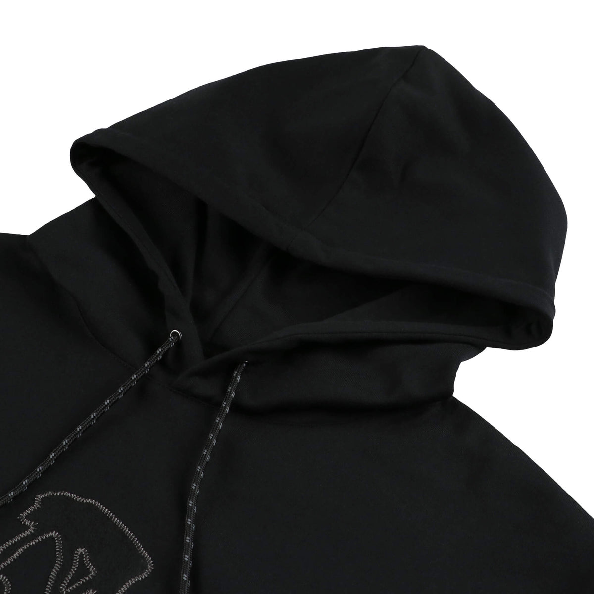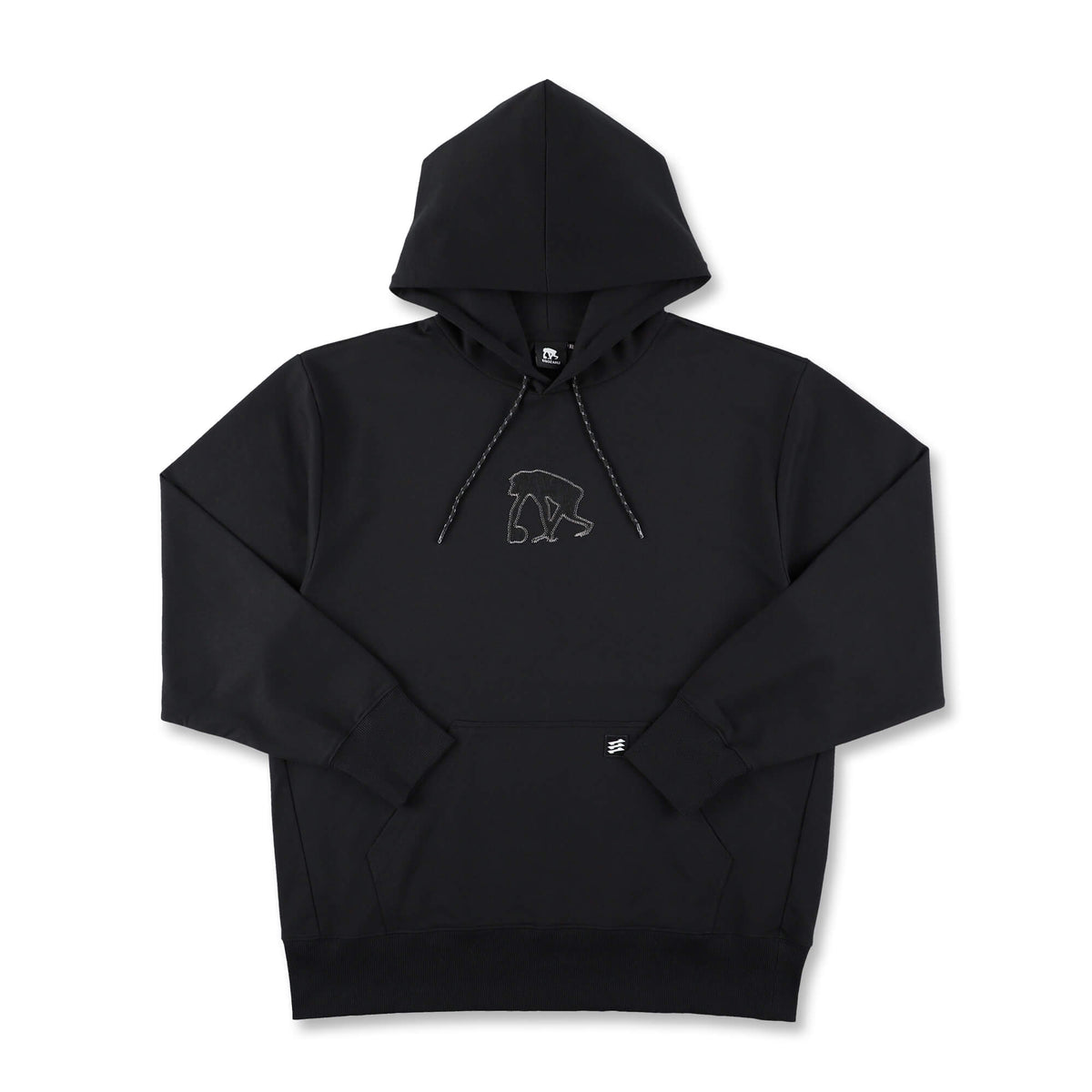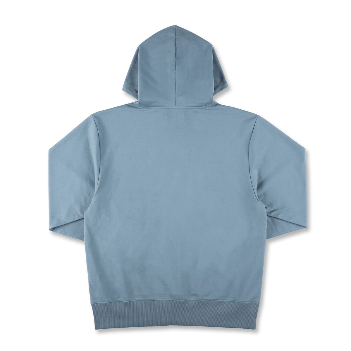 袖口、裾はリブの仕様。フードにはスピンドルを配置。