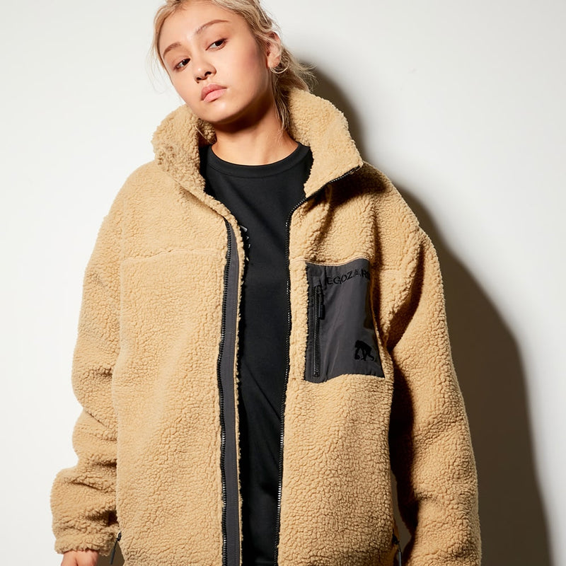 保温性に優れたシープフリース素材を採用したボアジャケット。