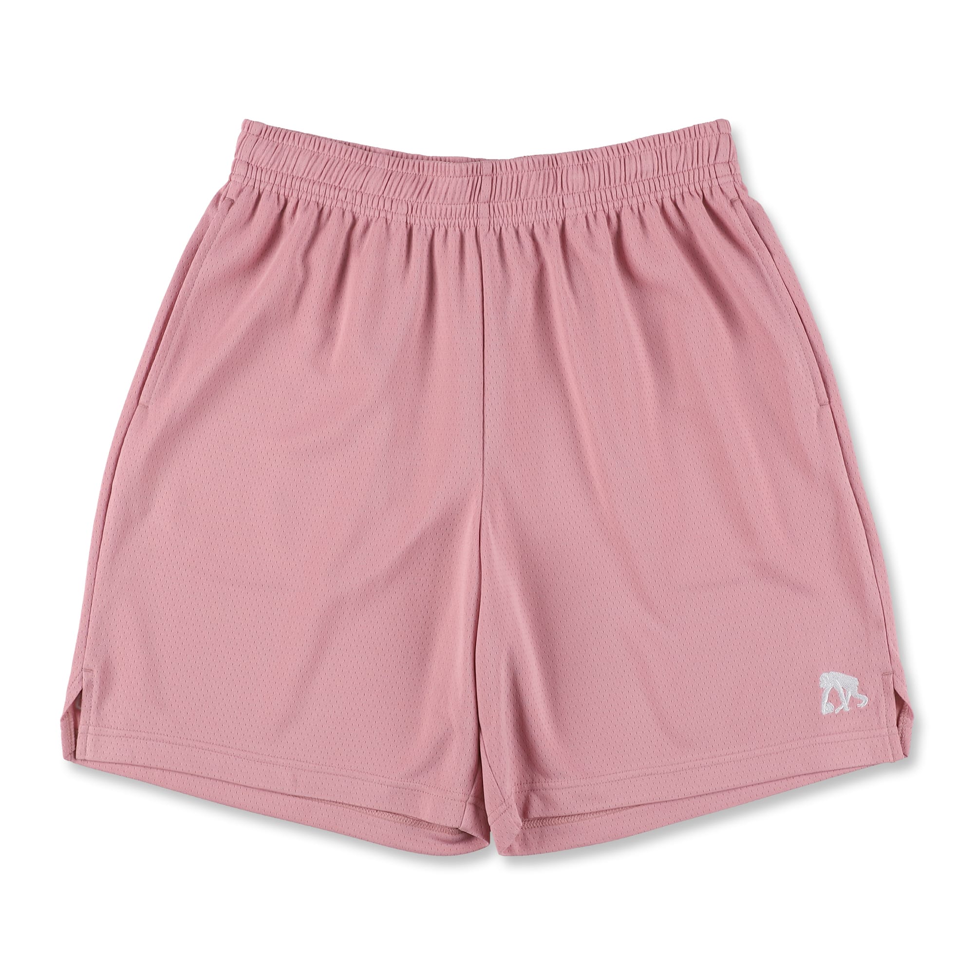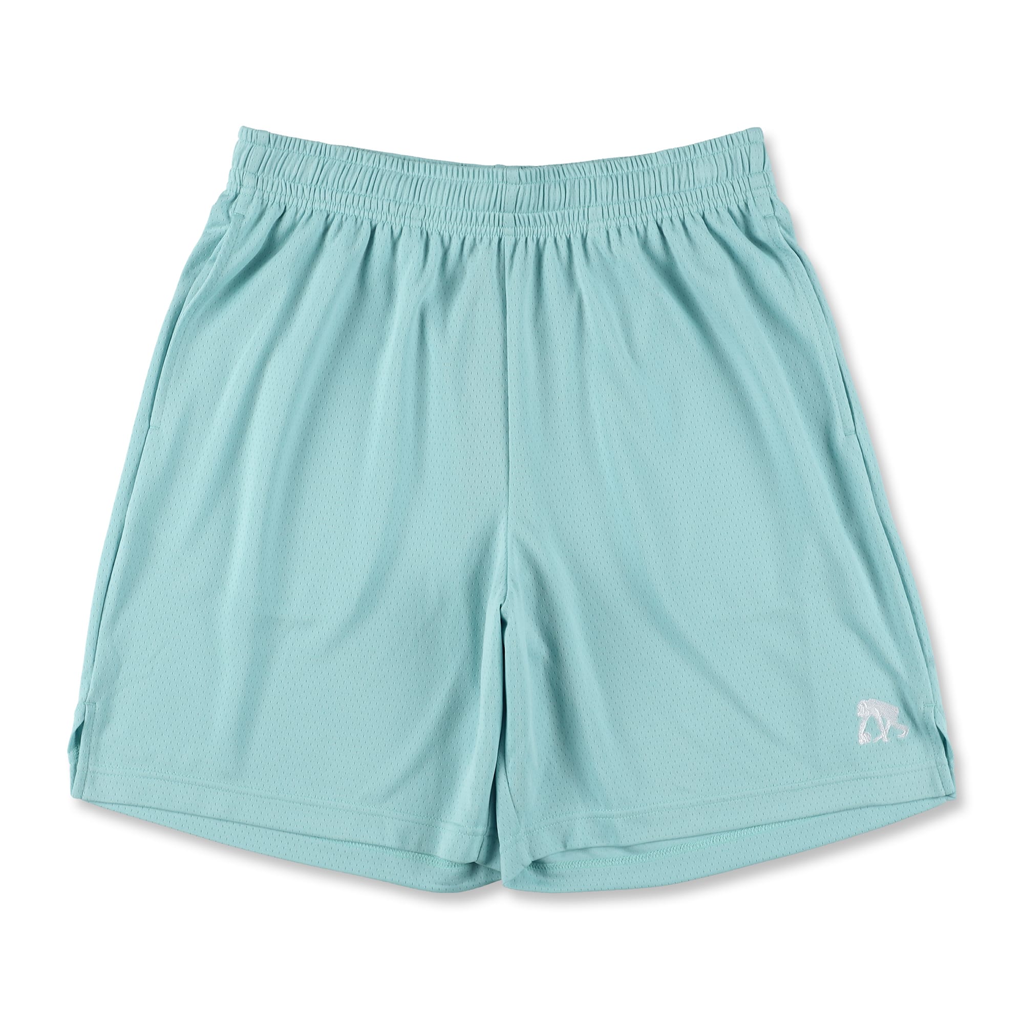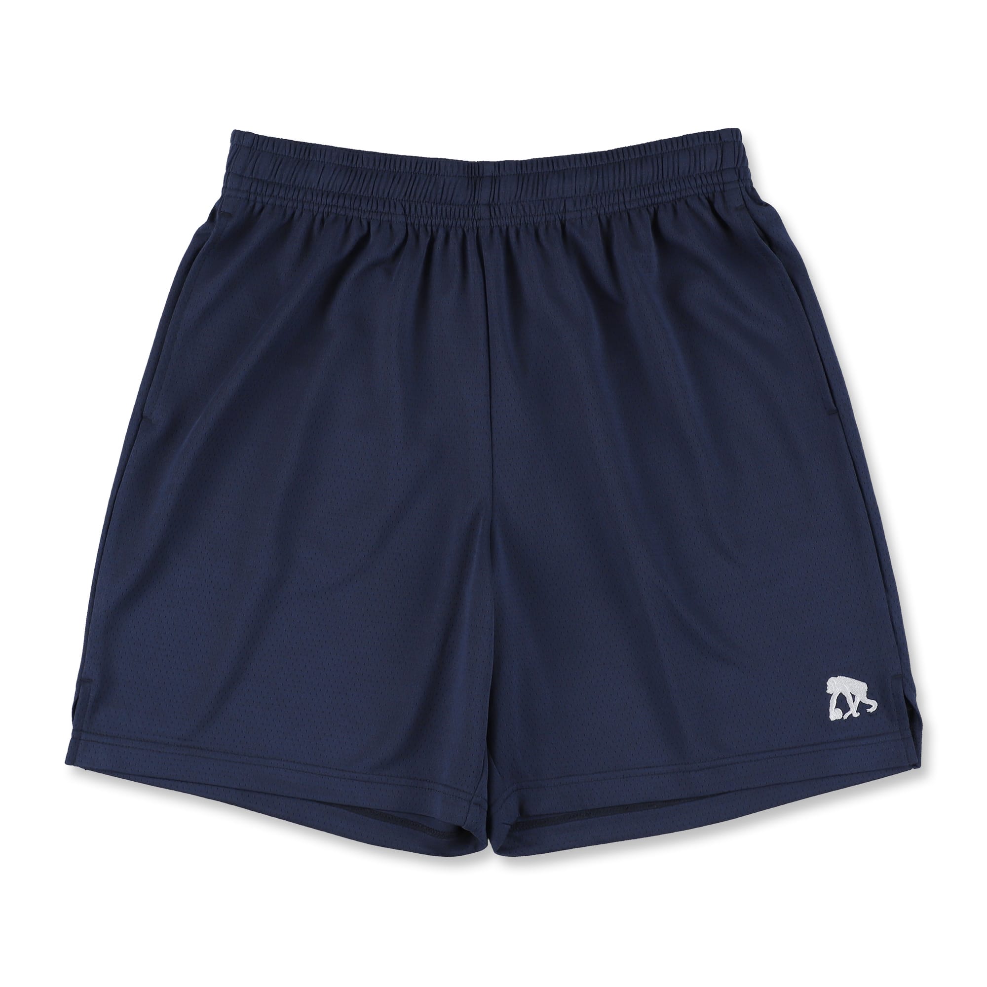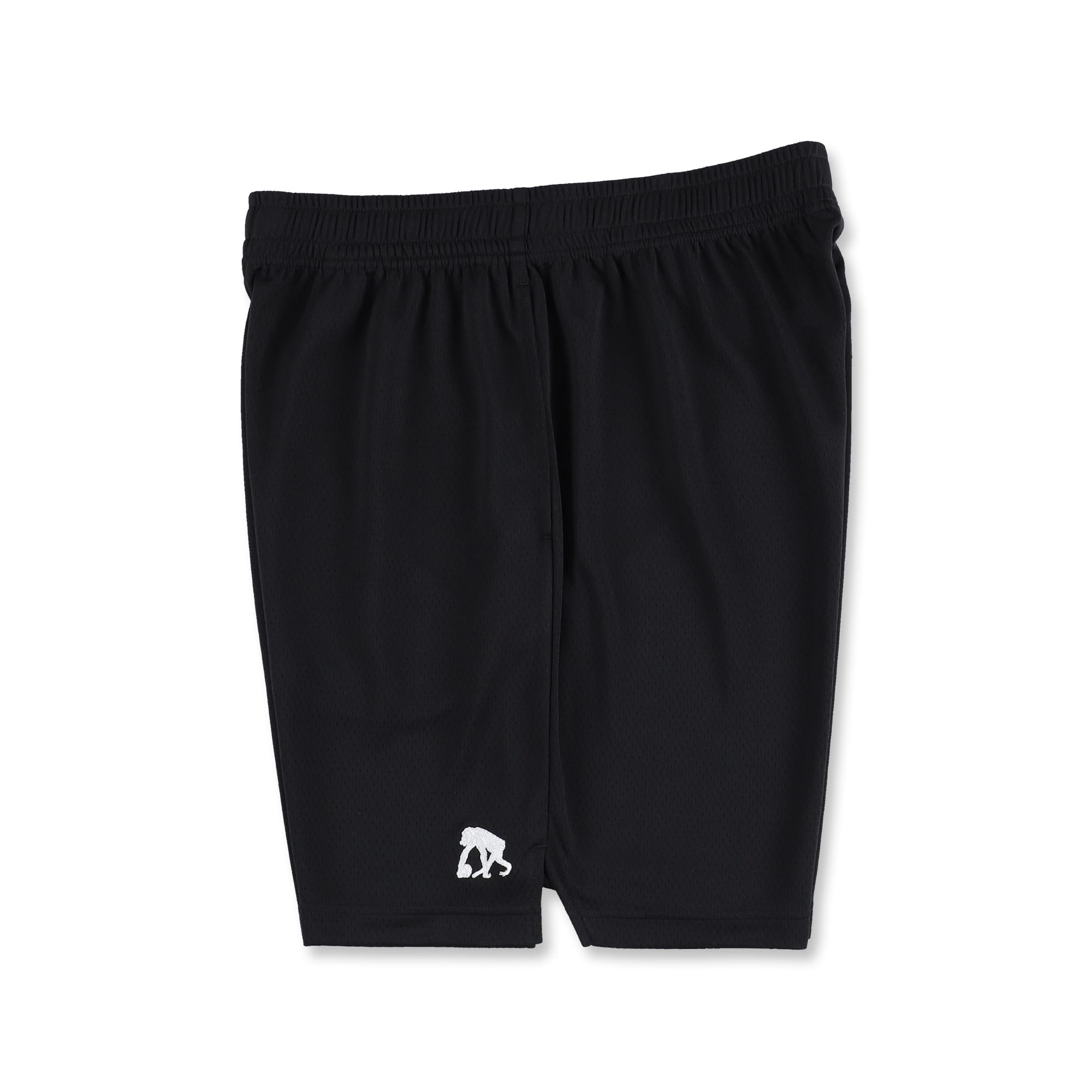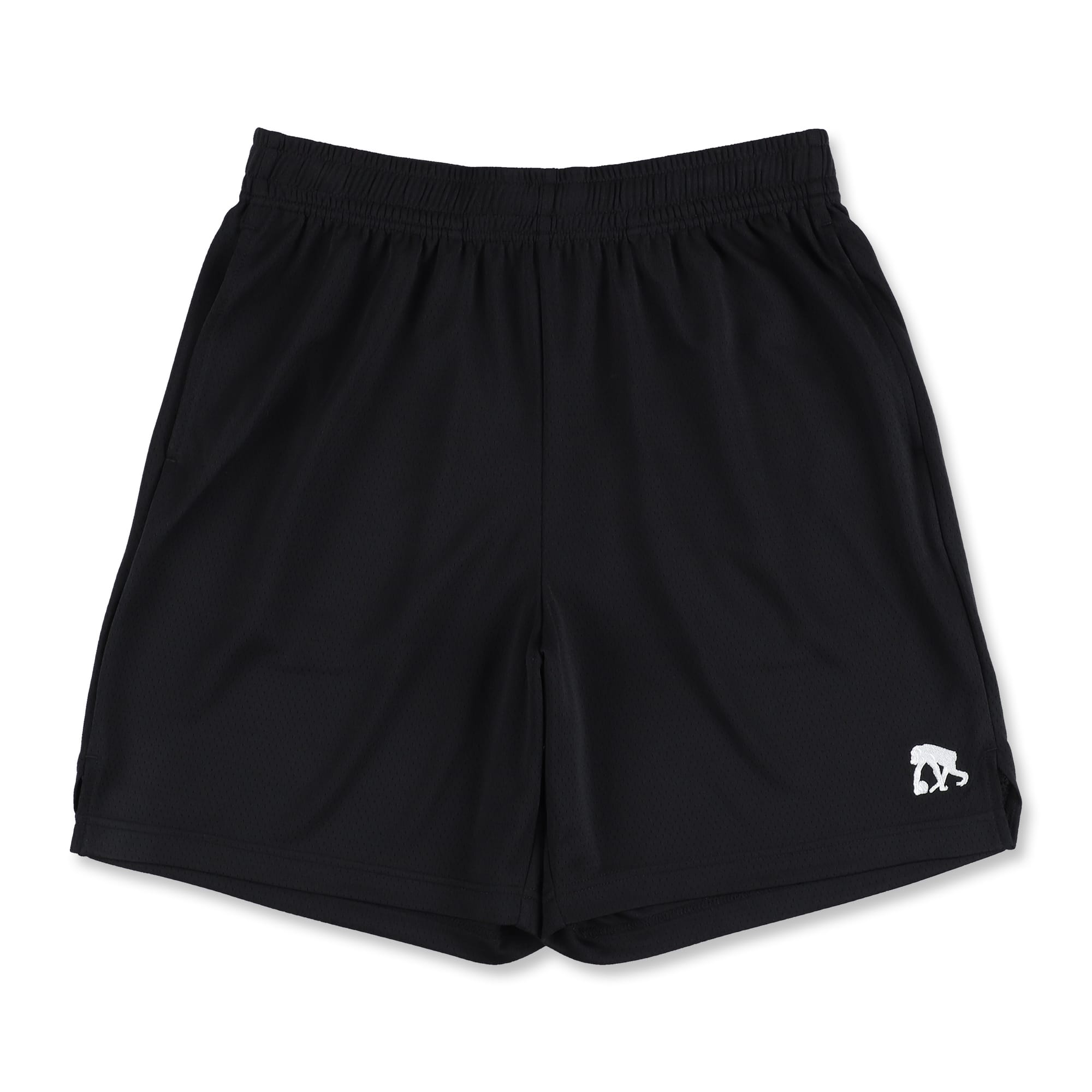 フロントの左右裾にシンプルなロゴを配した、ひざ上丈シルエットのベーシックなショートパンツ。
